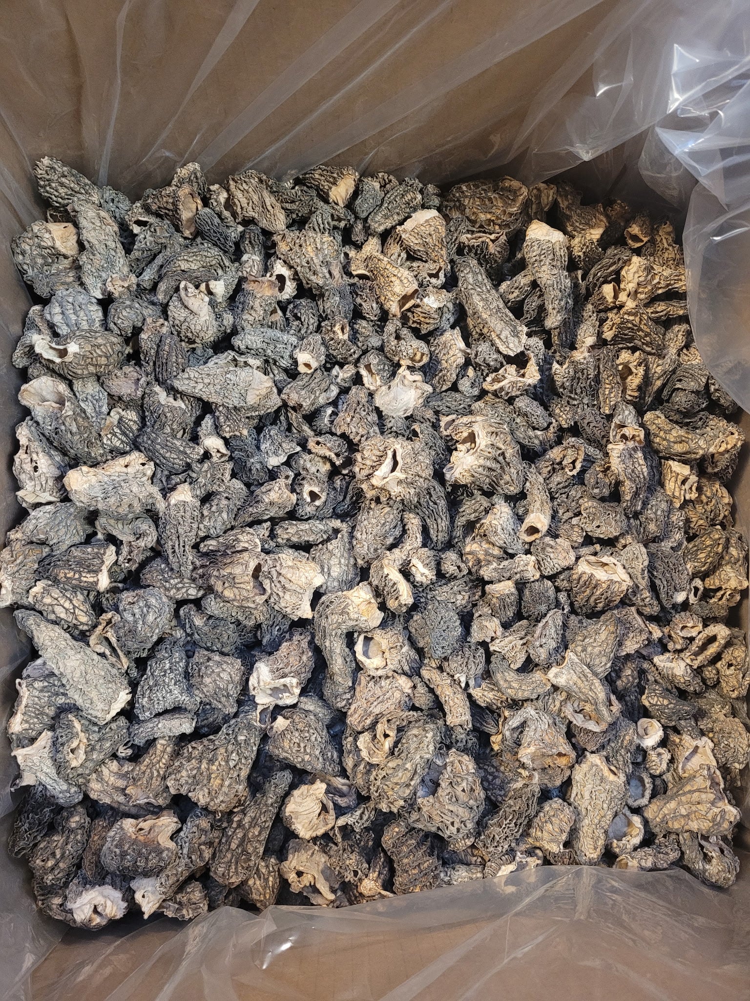 Dried Morels are a great value as it take 8 pounds of fresh morels to make 1 pound of dried morels. Our 4 ounces package will reconstitute back to nearly 2 pounds. They are a convenient solution to year round morel because you can rehydrate them as you need them. The dried morel reconstitutes very nicely, coming back to it’s original form very well.